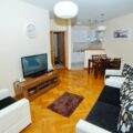 This special place is close to everything, making it easy to plan your visit. Its a walk away from the main beach and the cafes, shops… The apartment block has a friendly guard at entrance and parking space next to it. As you can see from the pictures the flat has been furnished with style. Apartment is located on the first floor and it has two large modern elevators. Internet and cable tv included in the price.