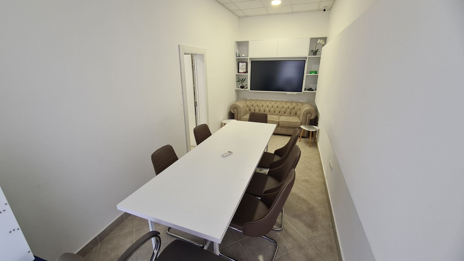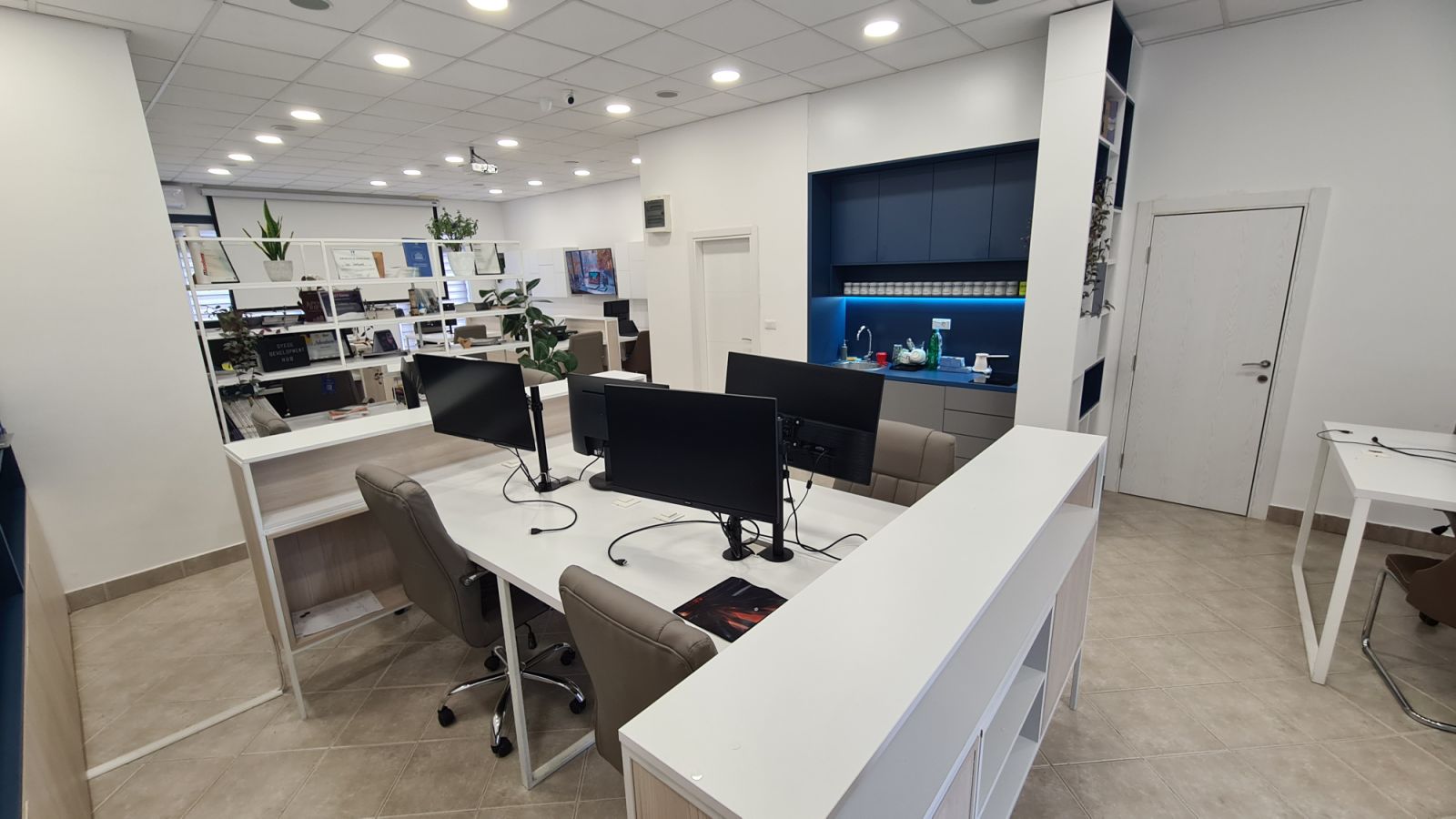 Open-space for around 20 workplaces, separate meeting room (8 people), kitchenette and toilet. It is fully technically equipped: LAN network, Wi-Fi hotspots, centralized audio system, interactive board, projector, screen and central server in a rack cabinet.