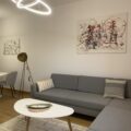 The apartment is completely new. The inventory in the apartment includes a beautifully designed kitchen with kitchen elements, smart LED lighting and a fully equipped bathroom.